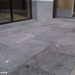 VIEILLISSEMENT DE MANIÈRE ARTISANALE DE SOLS EN PIERRE BLEUE BELGE